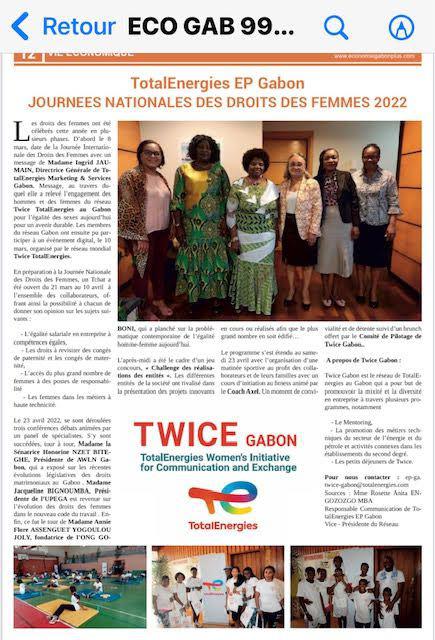 « Dr. Annie Flore ASSENGUET YOGOULOU JOLY, Présidente Fondatrice du Groupe International GOBONI était intervenue à la Conférence organisée par TotalEnergies EP Gabon à l’occasion de la célébration de la Journée Nationale de la Femme Gabonaise, le 22 avril 2022 ».
