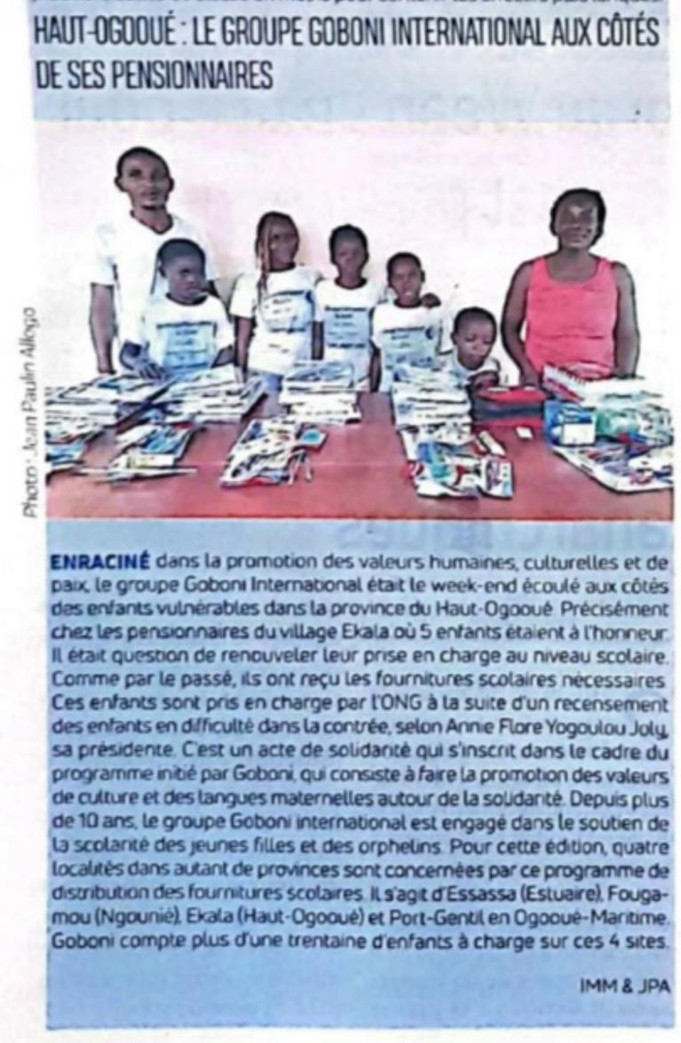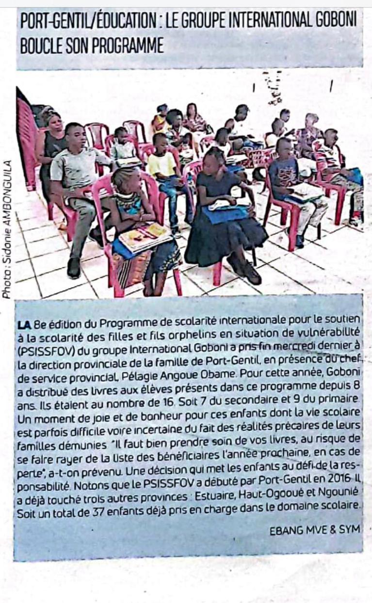 7e édition du programme de Solidarité Internationale pour le Soutien à La Scolarité du Groupe International GOBONI.